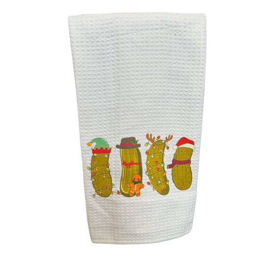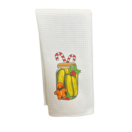 Waffle Weave Candy Cane Pickle Tea Towel