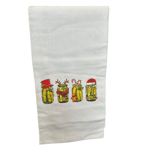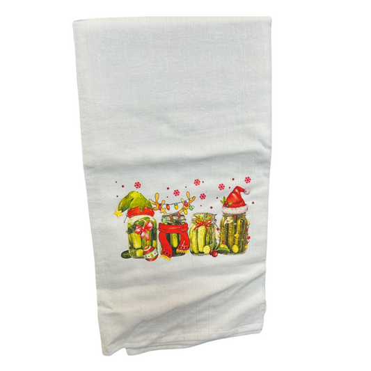 Flour Sack Christmas Pickle Jar Tea Towel